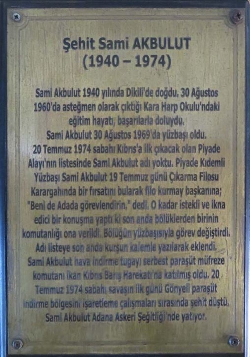 Özgeçmiş: Şehit P.Yzb. Hasan Sami Akbulut 1940 yılında İzmir'in Dikili ilçesinde doğmuştur. Lise öğrenimini Kuleli Askeri Lisesinde tamamlamış ve Kara Harp Okulu’ndan 30 Ağustos 1960 tarihinde teğmen rütbesiyle mezun olmuştur. Ayrıca 30 Ağustos 1969 tarihinde yüzbaşılık rütbesine terfi etmiştir.