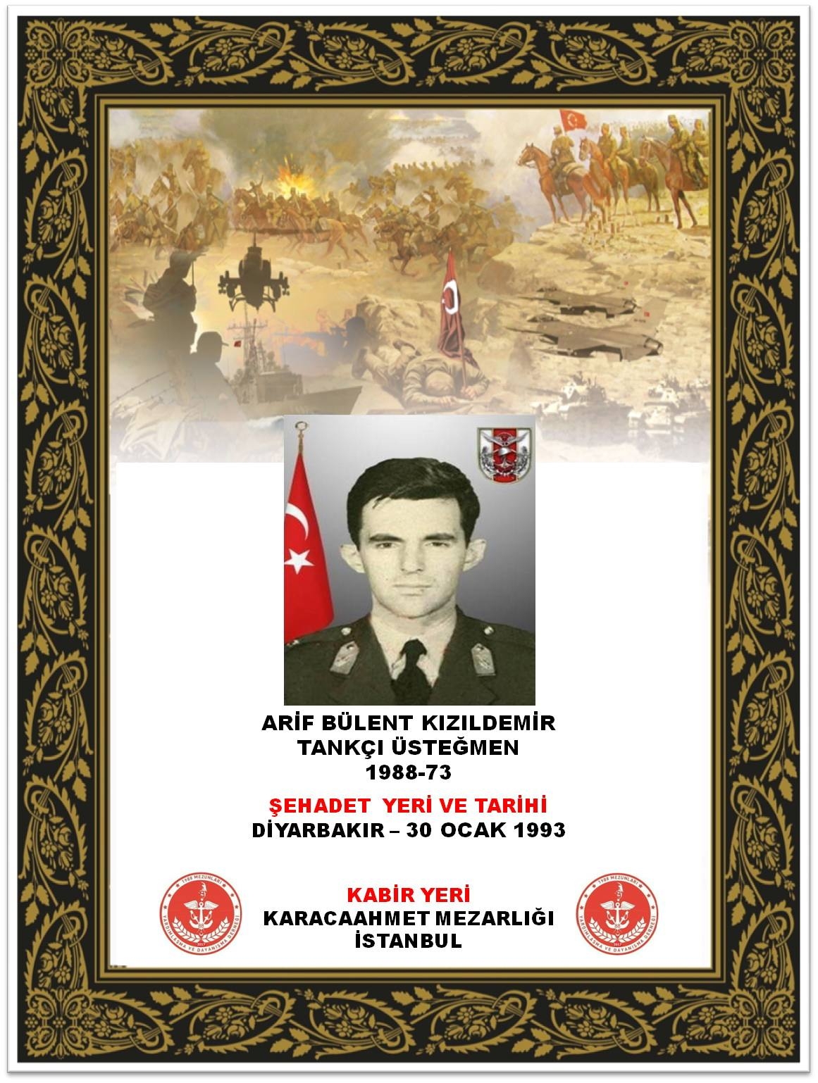 Özgeçmiş: Şehit Tank Ütğm. Arif Bülent Kızıldemir 1964 yılında doğmuştur. 1983 yılında Kuleli Askeri Lisesinden mezun olmuş ve 1988 yılında Kara Harp Okulundaki eğitimini tamamlamayı müteakip, Zırhlı Birlikler Okulu ve eğt.Mrk.K.lığına gitmiş ve 1989 yılında Tank Teğmeni olarak kıta görevine başlamıştır.