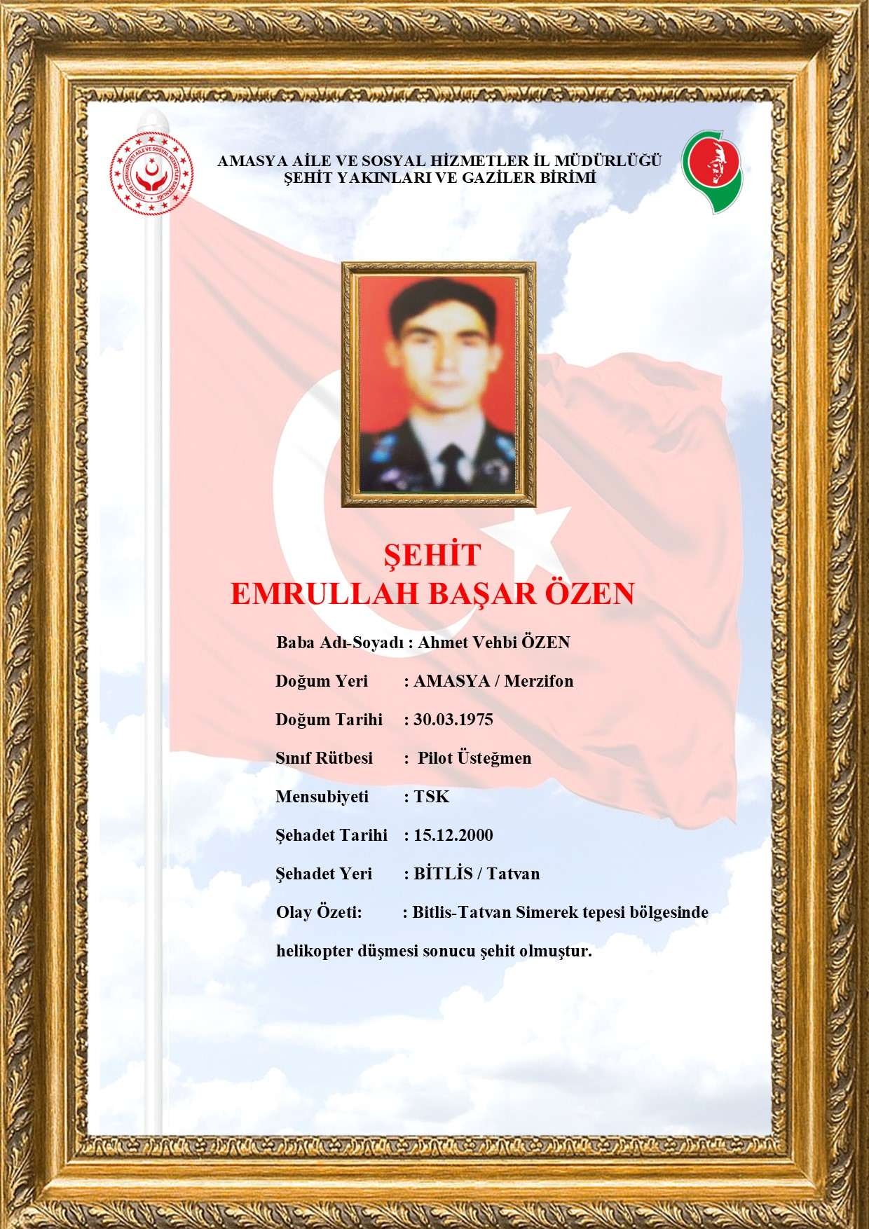 Özgeçmiş: Şehit Kr.Plt.Ütğm. Emrullah Başar Özen 1993 yılında Kuleli Askeri Lisesi'nden ve 1997 yılında Kara Harp Okulu’ndan Teğmen Rütbesi ile mezun olmuştur.