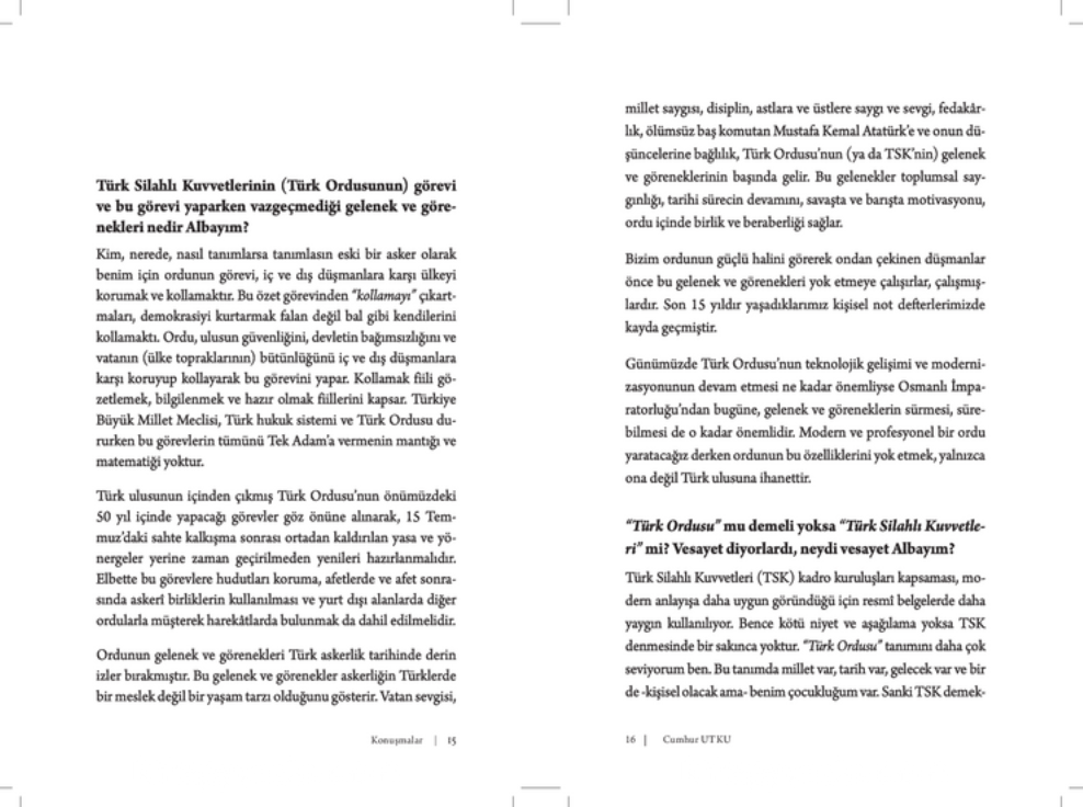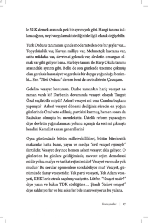 Yurt ve yurttaş hakkında konuşmalar, zamanın nabzını tutmaktadır. Bu kitap sadece bir döneme ışık tutmakla kalmıyor aynı zamanda bireylerin iç dünyalarındaki çatışmaları, özlemleri ve düşünce fırtınalarını gözler önüne seriyor. Çağdaş dünyanın bireyi yalnızlaştırdığı bir zamanda konuşmanın, yazmanın ve anlamanın değerini anımsatıyor.