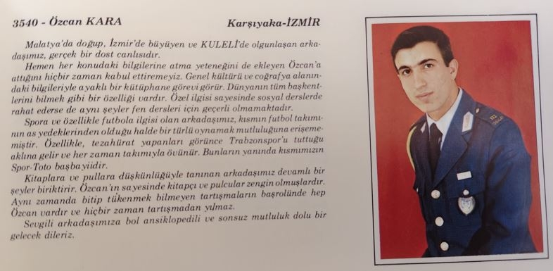 Bizim devrenin şanssızlığı mıdır nedir Kuleli’ye girince üniformalar değişti. Kolej elbisesine benzer, harici elbise dediğimiz törenlerde ve izne çıkarken giyilen lacivert ceket boz (evet canım o zaman gri lafı yoktu) renkli pantolon ve lacivert şapkadan oluşan üniforma giyilmeye başlandı. İlk dönem sonuna kadar ancak tamamlanabildi. Dahili elbise ise benim için işkence, çünkü haki renkli kaşındıran aba kumaşından. Altına da postal denen kısa botlar giyiliyor. Boğazımızda Kuleli ve As.Lis yazısına spolet, omuzumuzdakine apolet, HZR. yani sınıf işaretine de şifre deniyor. Offf, öğrenecek ne çok şey var…Kuleli’ye girerken askerlik hakkında tek bildiğimiz şey bitirince subay olunacağı, başka bir fikrimiz yok. Ben öyle bilirdim ama sonraları öğreniyorum ki Erdener (Sevinç) bu konuda çok bilinçli, Kuleli’ye girdiği gün “ben levazım olacağım, en yatış sınıf o” diye okula başlıyor. Aynı azimle Kara Harp Okulu’na da devam ediyor, sonuç en yorucu sınıf piyade…Bu tatlı sırrı benimle paylaşan Abdurrahman (Turan) kardeşimizi 1994 yılında üsteğmenken Bingöl’ün dağlarında kahpe bir pusuda şehit verdik, ruhun şad olsun canım kardeşim.